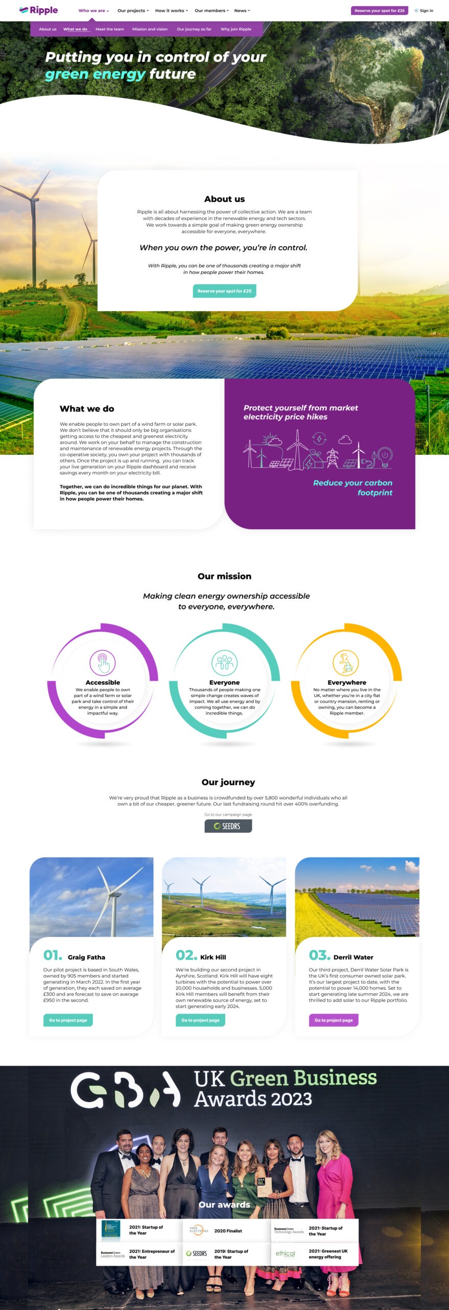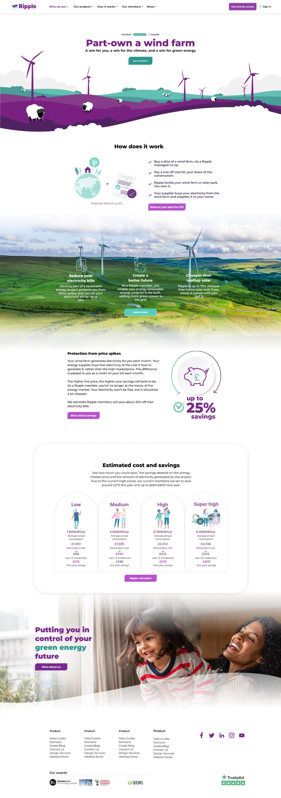 To do this, I focused on clarity and usability. First, I designed a bespoke website that matched Ripple Energy’s branding. Next, I applied SEO and UX best practices. As a result, the site became easier to find in search engines.